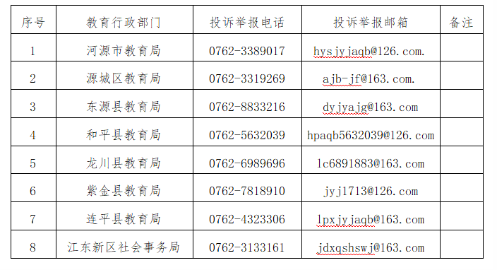 為進(jìn)一步暢通廣大師生、家長(zhǎng)、社會(huì)公眾投訴舉報(bào)渠道,建立家校社協(xié)同監(jiān)督機(jī)制,市教育局及各縣(區(qū))教育行政部門分別設(shè)置了監(jiān)督舉報(bào)電話和郵箱,受理和處置公眾反映的各類校車安全問題。誠(chéng)請(qǐng)社會(huì)各界及廣大家長(zhǎng)對(duì)我市校車安全進(jìn)行監(jiān)督舉報(bào)。